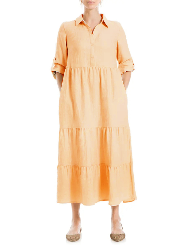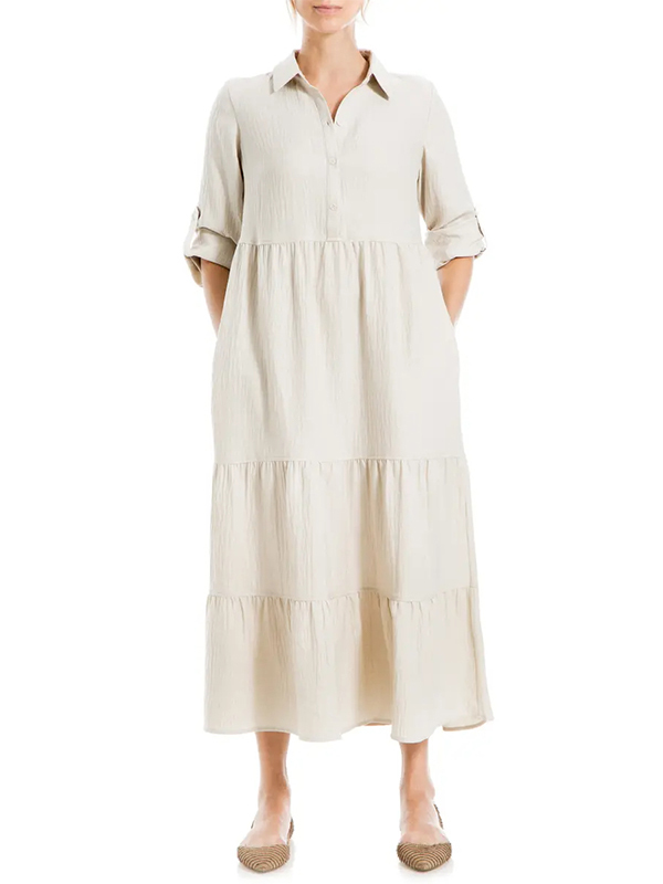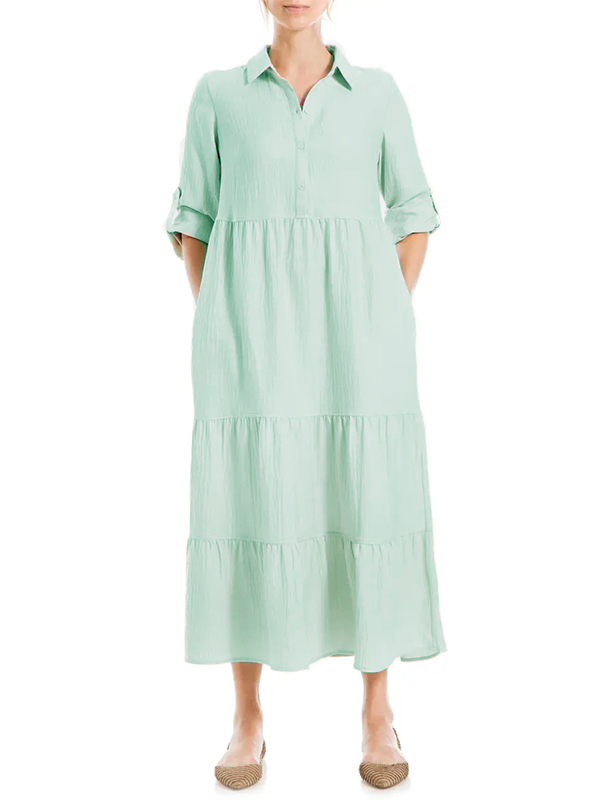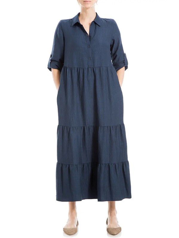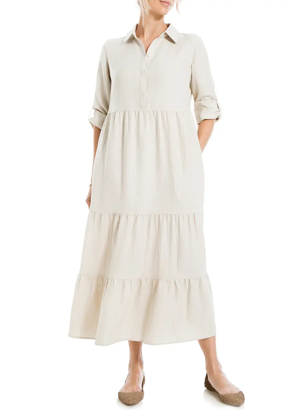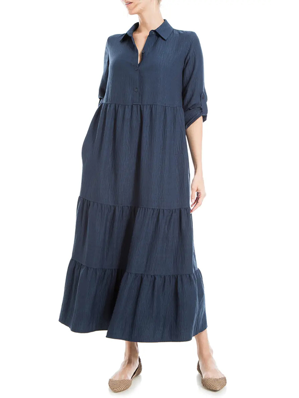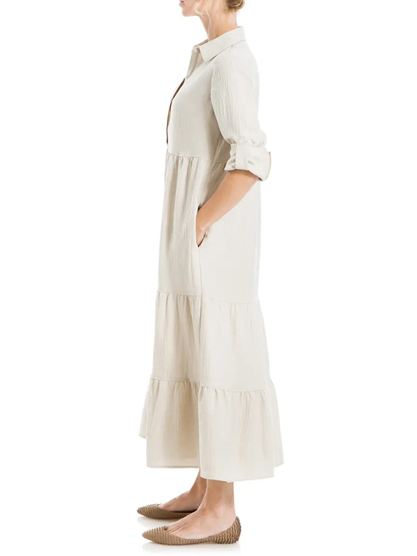 The Tiered Long Sleeve Gauze Shirtdress is designed for the modern woman who cares about sophistication and style. The elegant Maxi long dress is perfect for any occasion.
