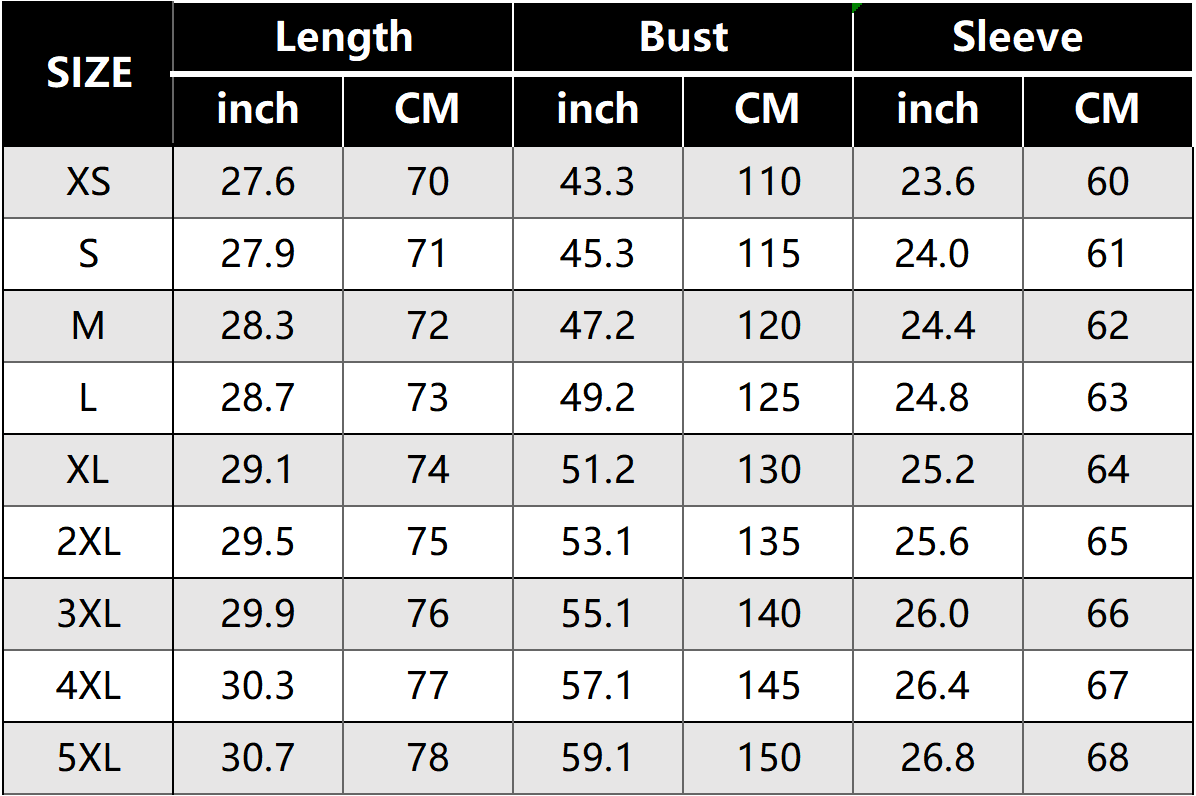 SIZE CHART: