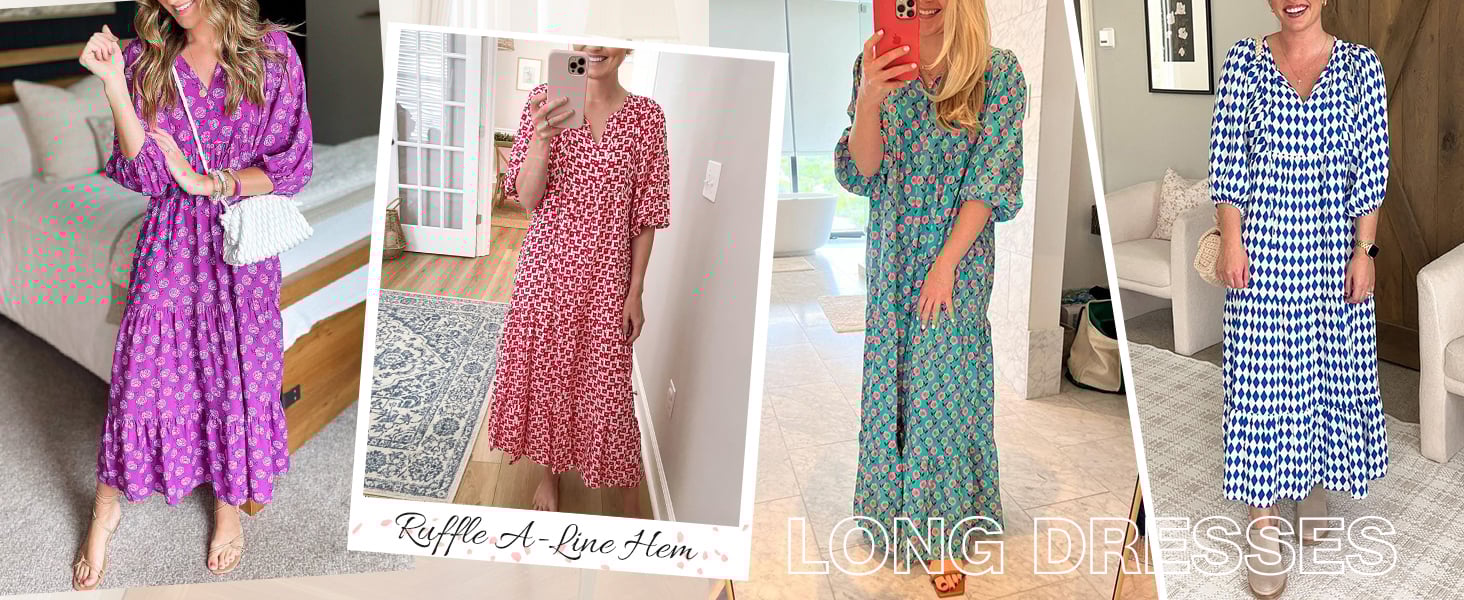 This women's bohemian long dress offers a comfortable and relaxed fit with its classic high-waisted loose fit, V-neckline and ankle-length.