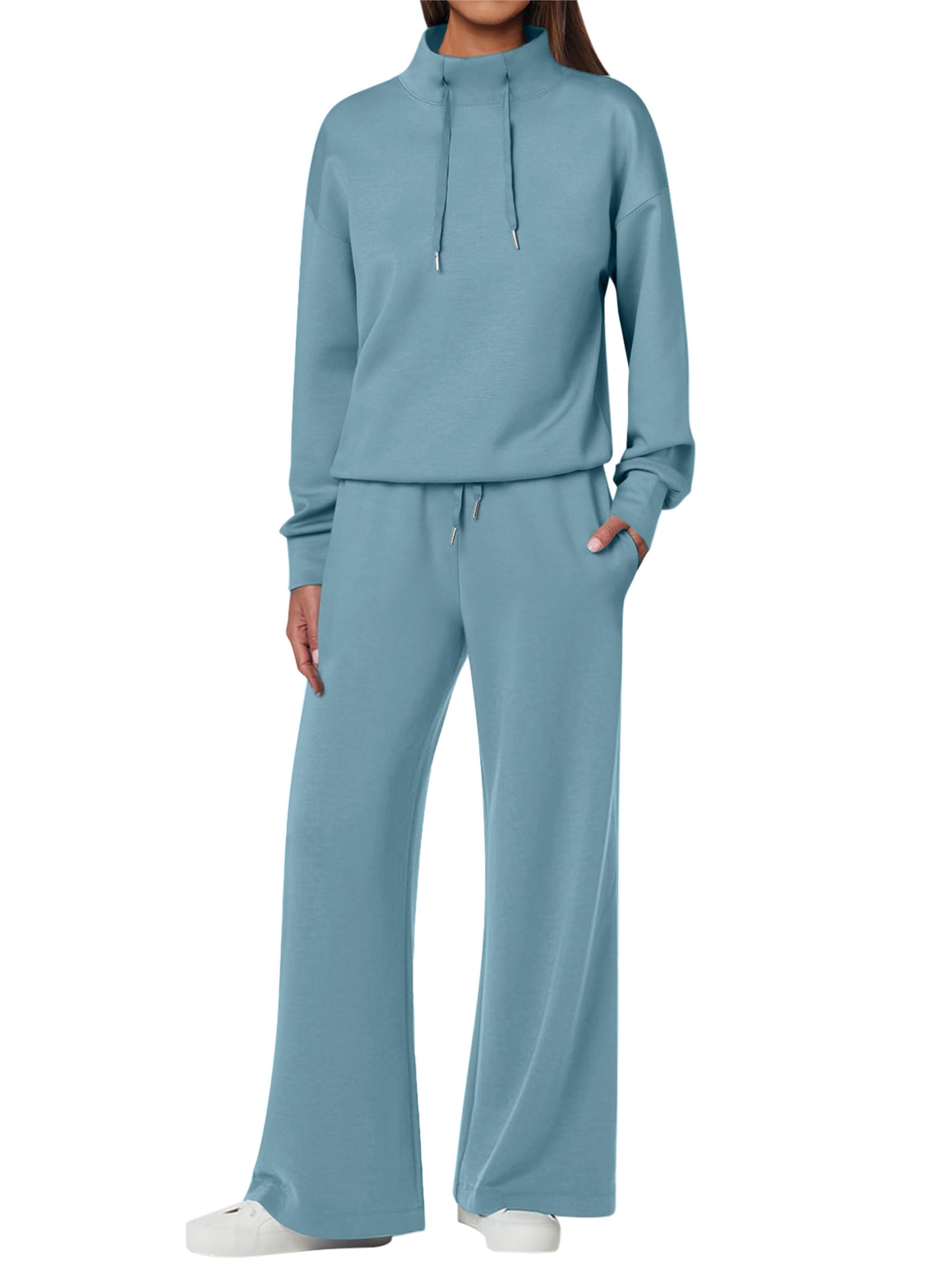 NEW 🔥 Women's Cotton Two-Piece Oversized Drawstring Sweatshirt Wide Leg Sweatpants Casual Set